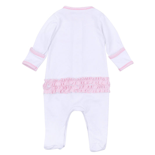 Santa Baby Embroidered Baby's First Christmas Ruffle Footie - Pink